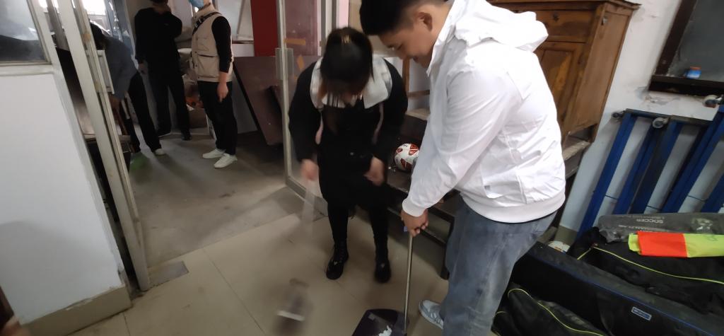 灰暗的天空没能打消同志们的热情, 为了方便活动的进行,把大家分为两个小组,主要任务是打扫西操仓库的卫生,每一个小组由组长带领进行打扫清洁。活动过程中小组内进行分工合作,每位同志都有自己的任务,活动中大家用抹布将桌椅等擦拭干净、摆放整齐,同时有扫地的同学由上到下进行清扫,还有人负责换水清洗抹布,整个过程中活动井井有条,每一份子都有自己的负责区域,整个活动速度比预计的快,同时也提前完成了任务。经过2个小时的清洁打扫,西操仓库环境大大改善,各种物品干净整洁,摆放有序。