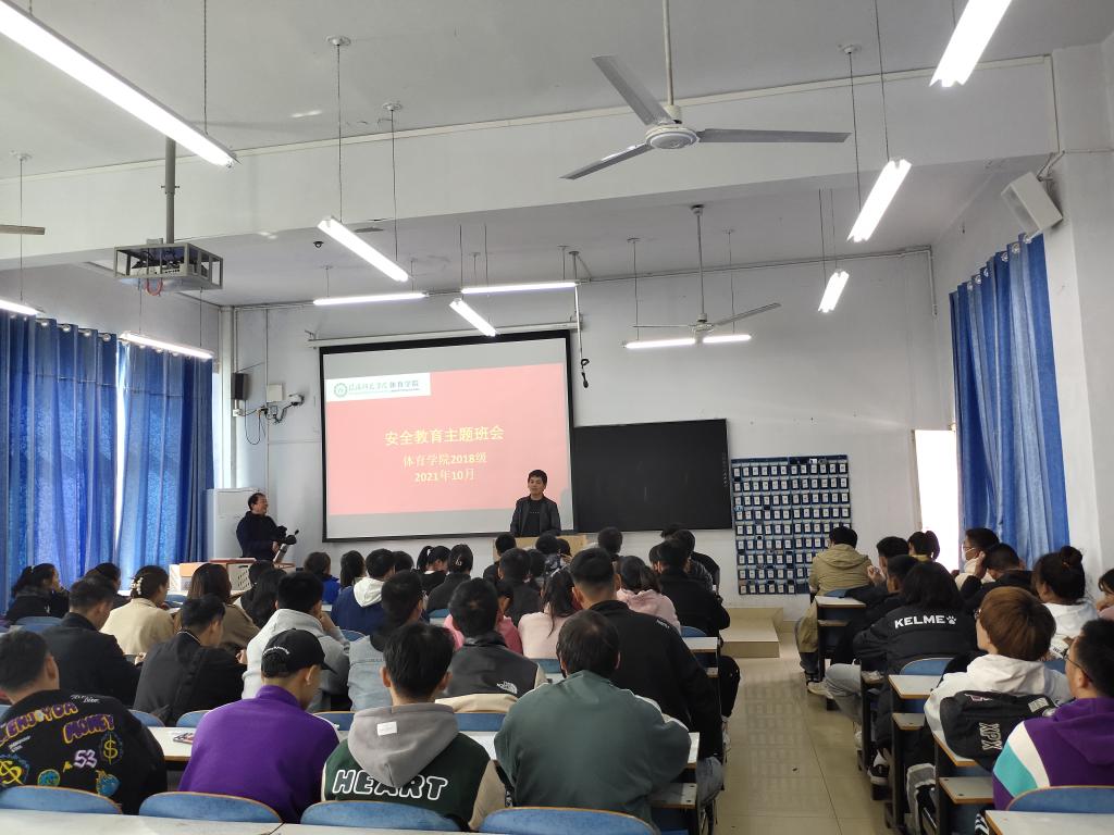 为提高同学们的安全防范意识,增强同学们的安全防范能力,全面普及校园安全常识,创造和谐安全的校园环境,体育学院2018级于10月27日上午在多媒体教室、教育九402分别开展了安全教育主题班会,2018级全体学生参会,此次班会由2018级辅导员程俊辉主持。